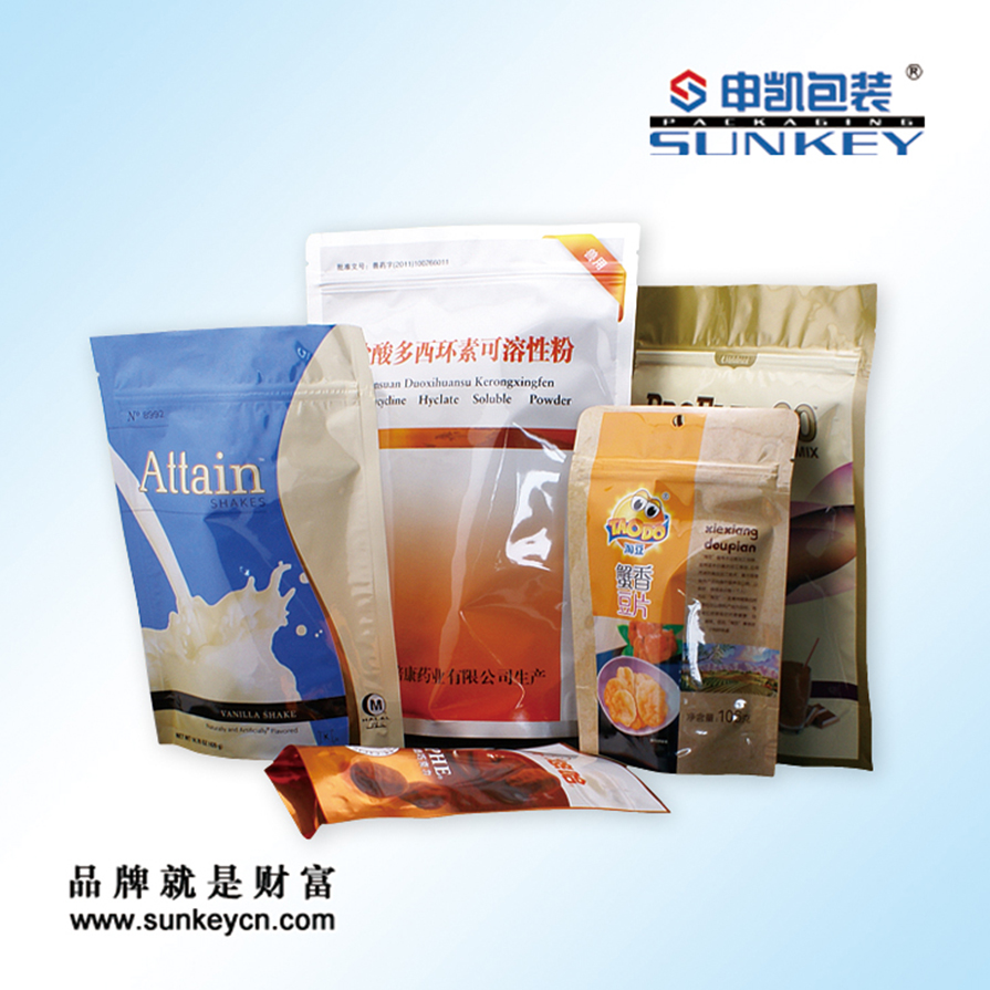 袋形:三邊封、自立拉鏈袋、陰陽袋印刷:我公司有2臺(tái)11色印刷機(jī)器,絕對(duì)可以保證套色的精度。
